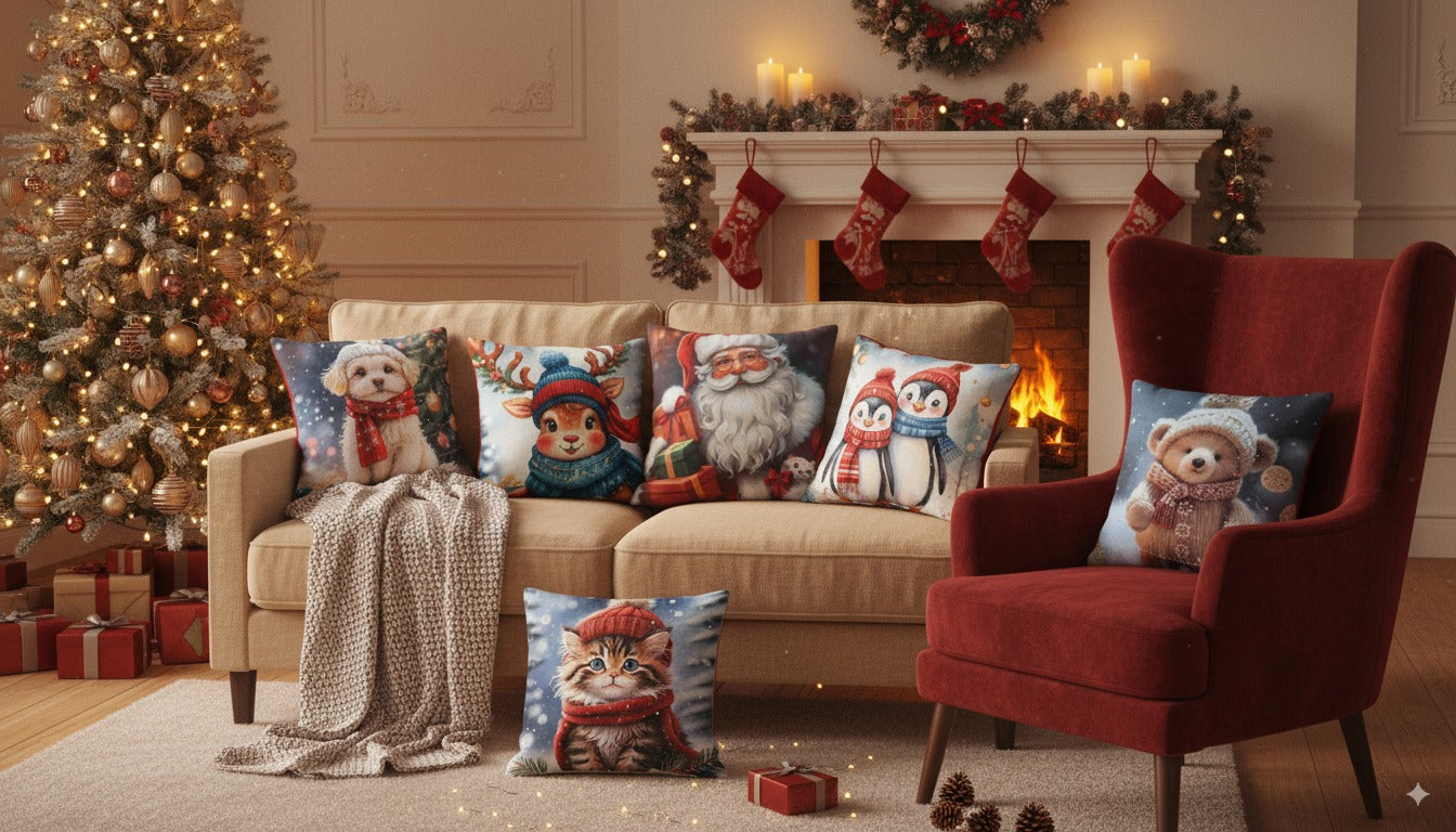 Dale un toque único y brillante a tu hogar este diciembre con nuestras cojines de navidad.