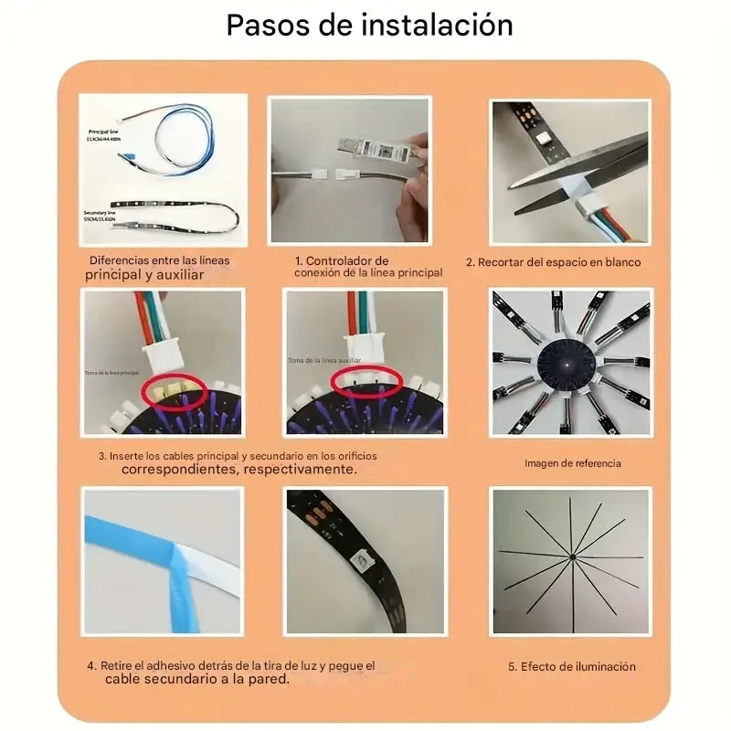 🎶 Enchufa el USB y controla las luces desde la App o el control remoto.