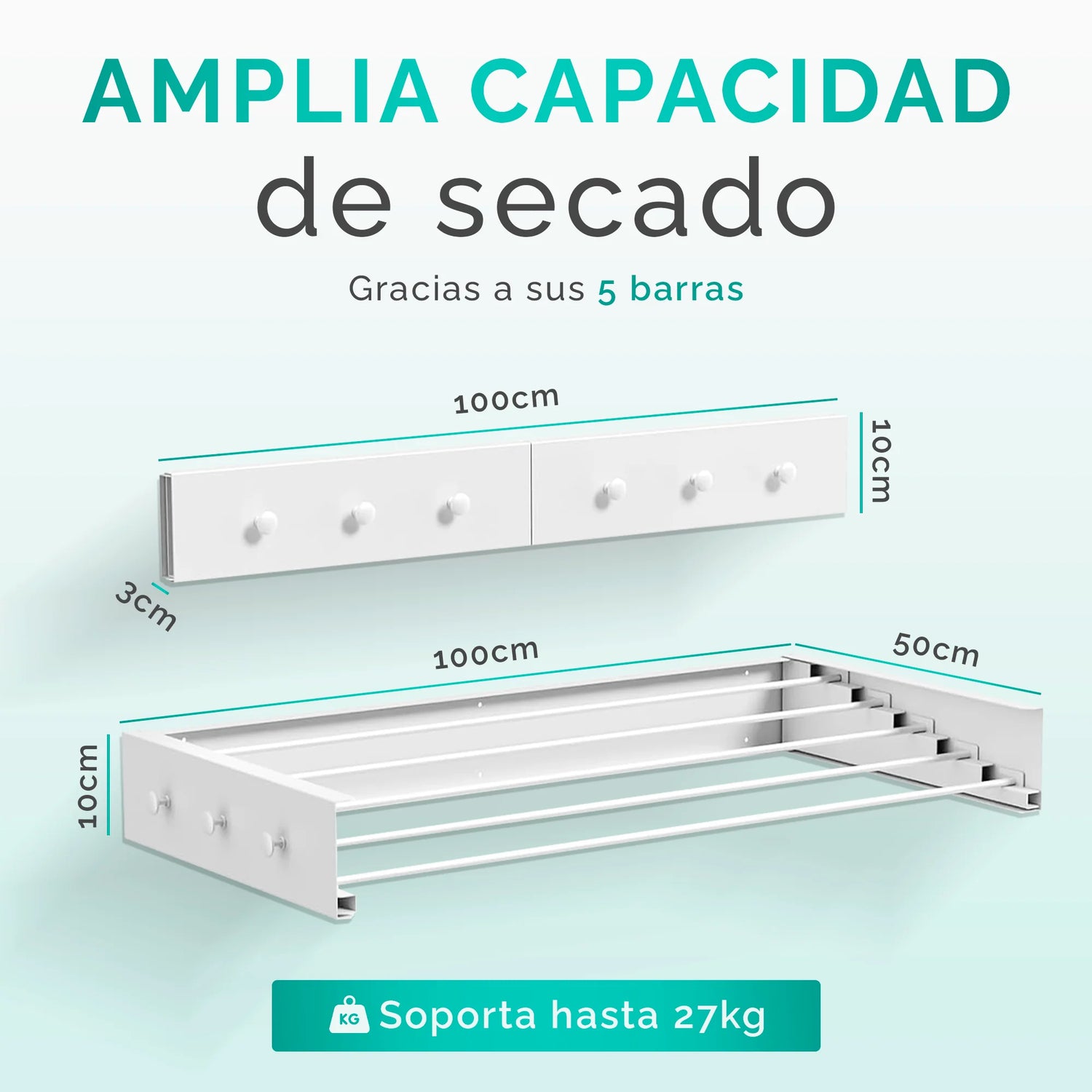 Este tendedero plegable y extensible es la solución perfecta para hogares con poco espacio. Se instala en la pared y se despliega solo cuando lo necesitas.